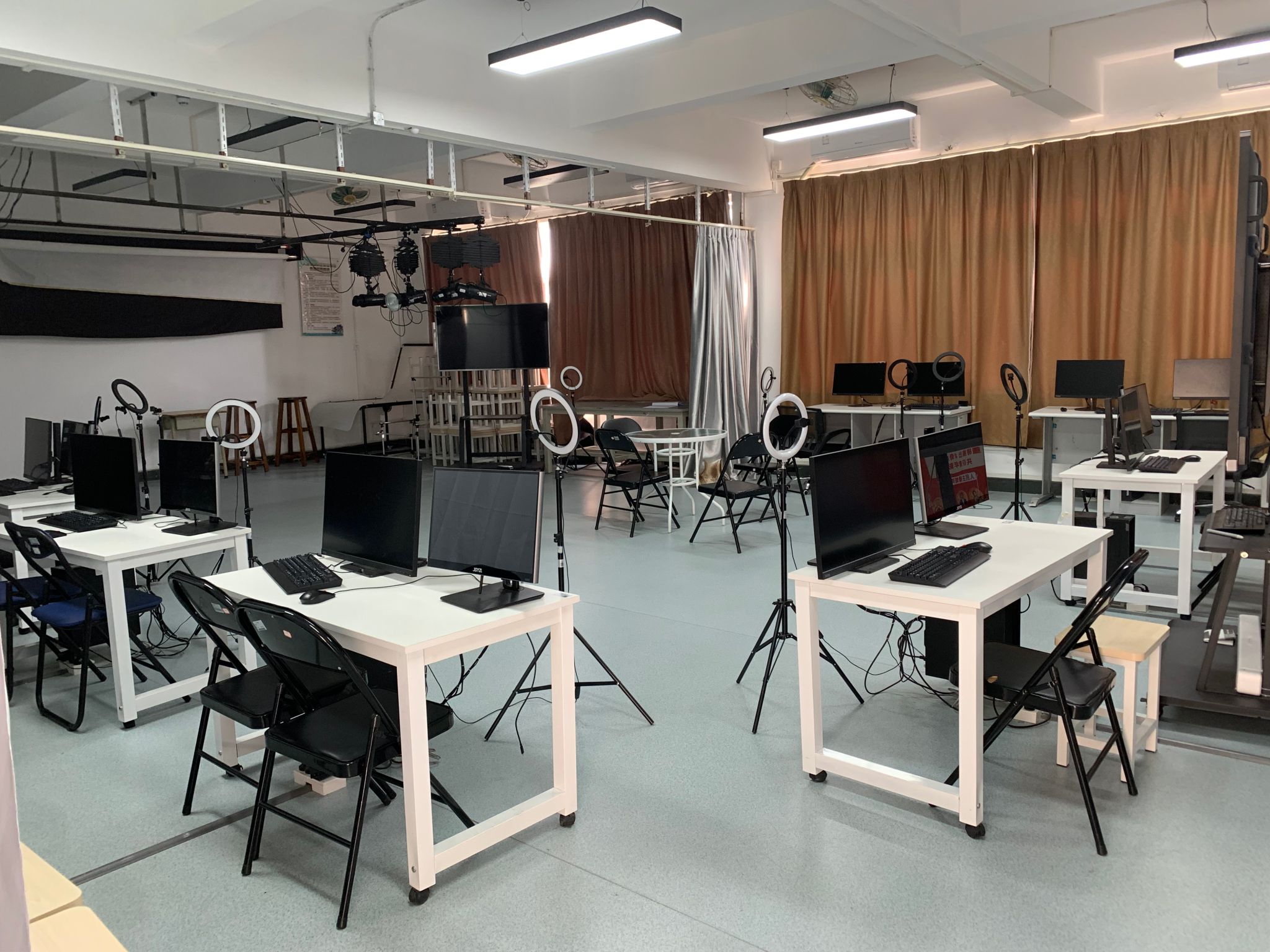 5.实训条件:本专业建有具有国内领先水平的一体化数字高清全媒体演播厅、创意策划实验(训)室、摄影摄像实验(训)室、网络编辑实验(训)室等校内实训室,能充分满足本专业教、学、产、训一体化的教学需要。