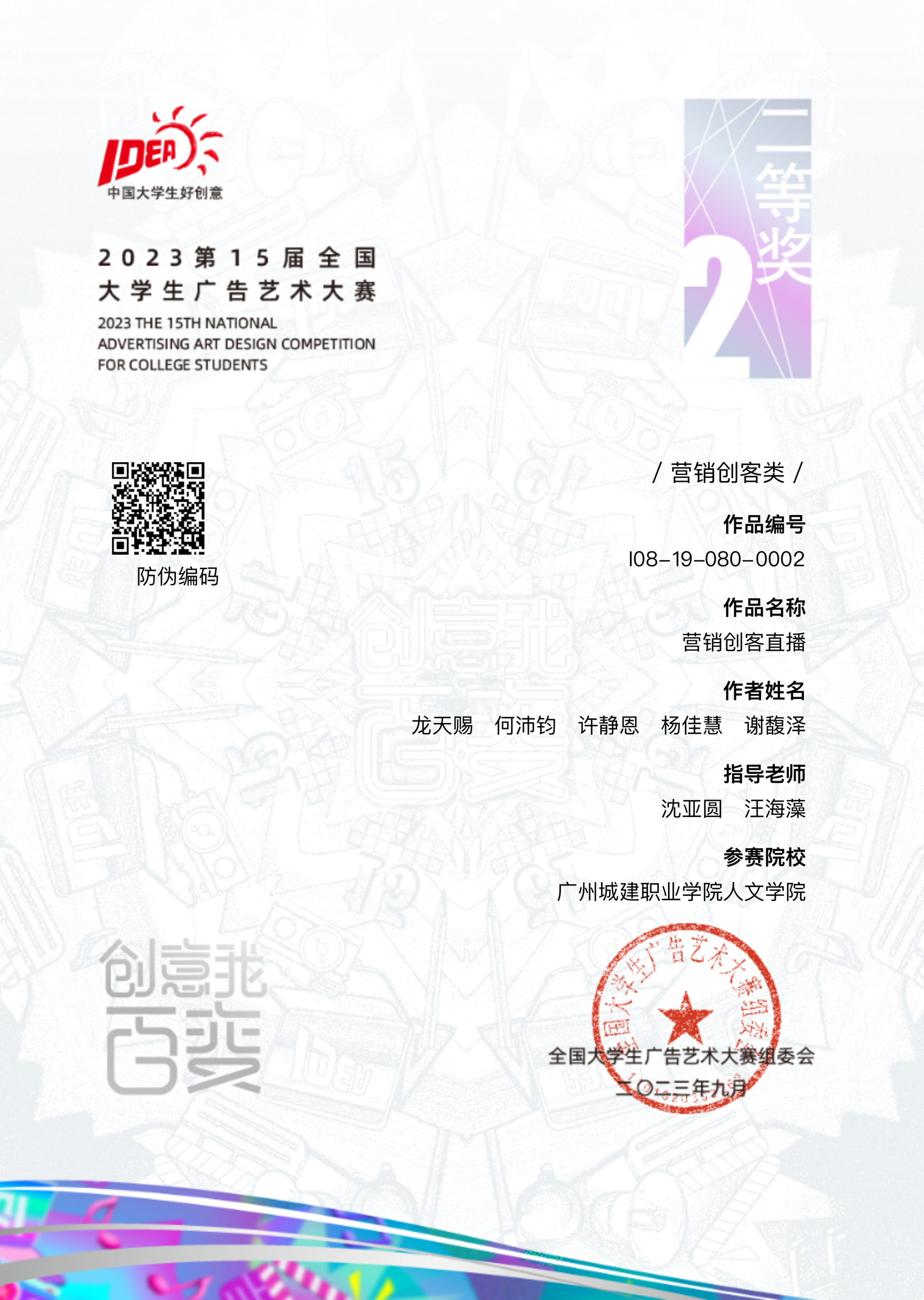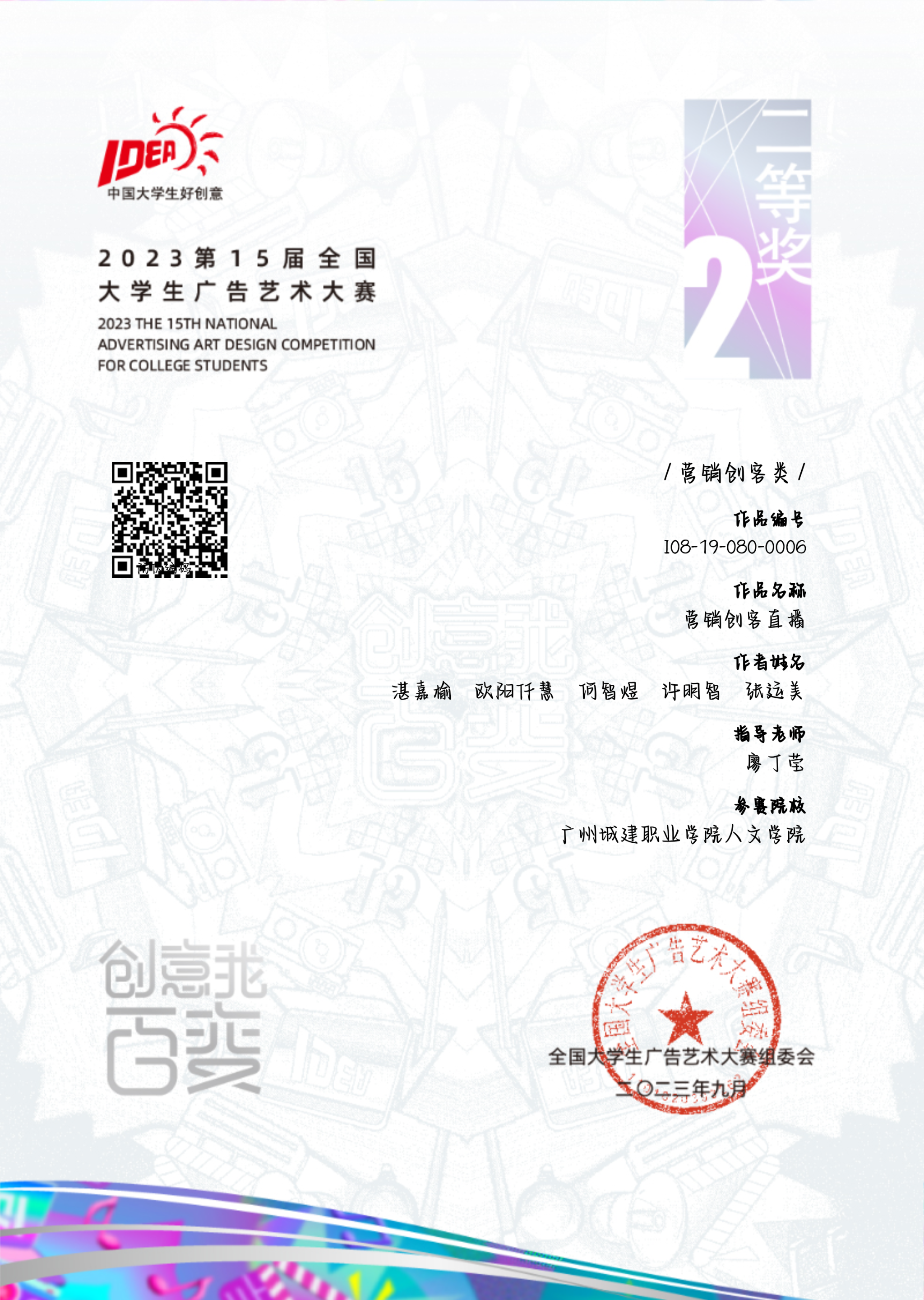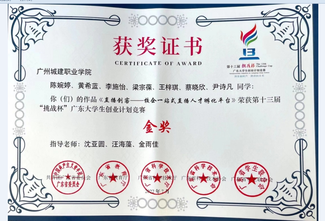 7.员工获奖:自本专业成立以来,本专业员工先后获省级以上竞赛等级奖30余项。其中:2022年度全国老员工“挑战杯”国赛银奖1项(广东唯一民办高校国赛获奖)、广东省赛区金奖1项;2024年中国老员工国际创新大赛全国入围奖1项、省金奖1项、铜奖1项;全国老员工广告艺术大赛全国二等奖4项、三等奖1项,省级一等奖3项、二等奖15项;中国老员工广告艺术节“公司奖”直播赛道全国银奖1项、铜奖1项,优秀奖10余项;广东省职业院校员工技能竞赛一等奖3项、二等奖4项、三等奖1项等。