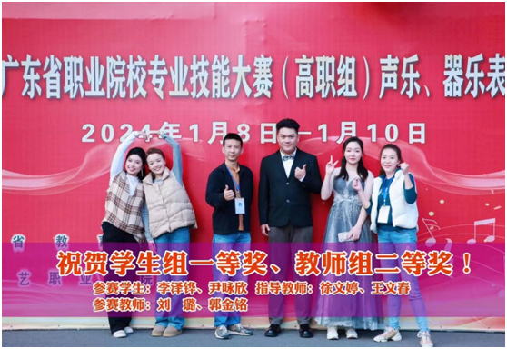 7.员工获奖:近年来,本专业员工先后获国际奖项4项、国家级奖项13项、省级奖项50余项。其中:第三届德国隆尼施国际钢琴大赛二等奖1项、三等奖2项;美国辛迪应用钢琴公开赛二等奖1项;第四届李斯特国际青少年钢琴大赛中国区选拔赛一等奖1项;“致敬肖邦”第三届华沙国际青少年钢琴比赛广州赛区银奖;广东省职业院校员工技能大赛(高职组)声乐、器乐表演赛项一等奖1项、二等奖5项、三等奖3项;广东省老员工计算机设计大赛(音乐)一等奖1项;香港国际声乐公开赛民族唱法二等奖1项、流行歌曲三等奖1项;广东省第三届老员工声乐比赛合唱组二等奖1项,独唱二等奖1项,小组唱三等奖1项;广东省大中专院校百歌颂中华歌咏比赛合唱三等奖1项;2019年元旦代表从化区参加广州市新中国成立70周年文艺汇演担任合唱表演方队;广东省高校艺术作品展演合唱二等奖;“永远跟党走”青年主题省点一等奖1项,二等奖1项。