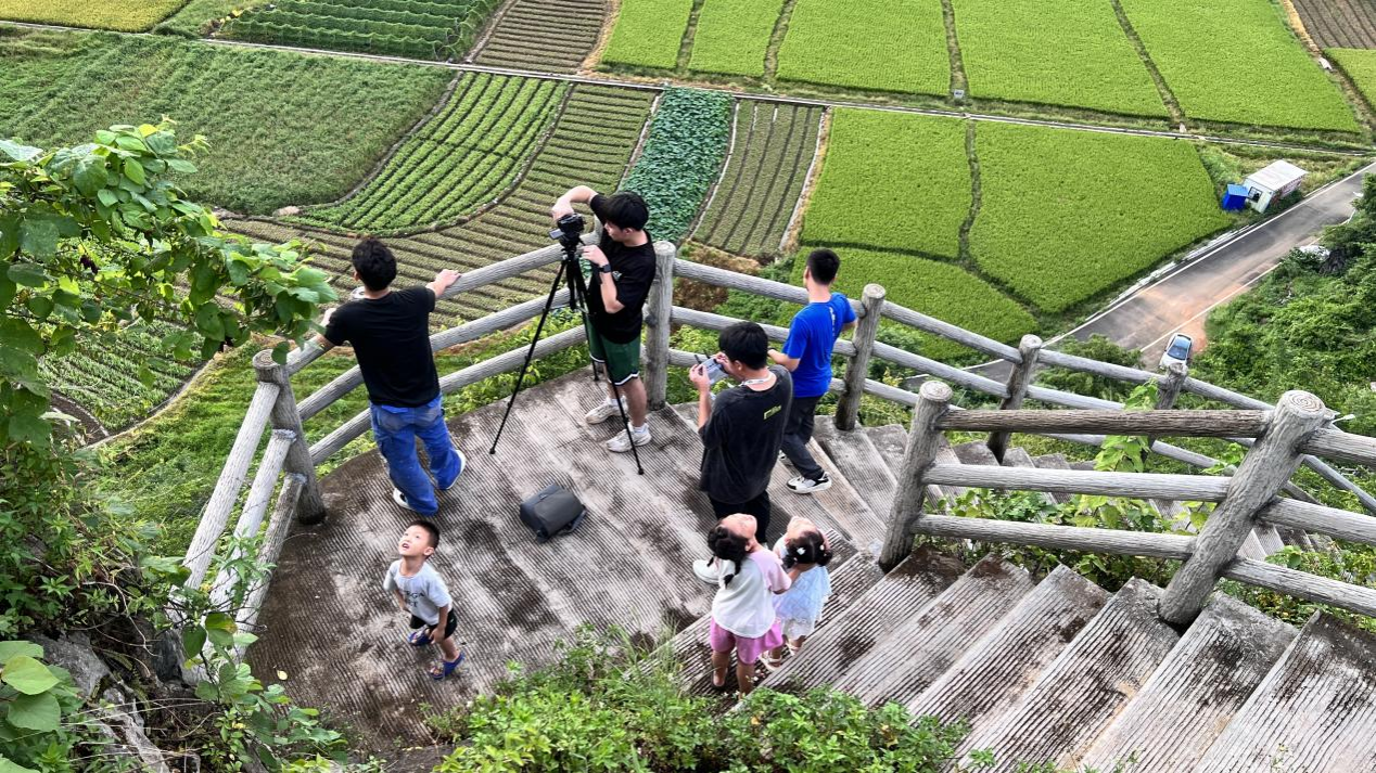 拍摄行动始于精密的策划。抵达苹塘后,余蓉团队第一时间与当地镇政府深度对接,苹塘镇委书记彭良艺高度重视,亲自参与讨论,与团队共同敲定拍摄主题与叙事脉络,力求全方位、立体化呈现苹塘独特的自然风貌与深厚的文化积淀。在驻镇帮镇扶村工作队第一书记王海侨与文化站站长甘炎昊的全程协调与实地引领下,团队得以高效深入喀斯特山林、田园风光、千年溶洞、传统村落等最具代表性的场景,确保镜头精准捕捉苹塘文旅精华。