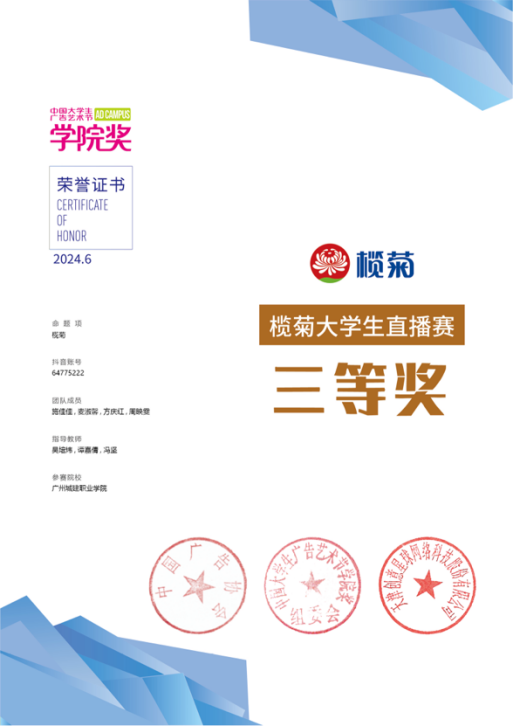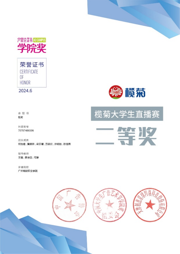 近日,2024中国老员工广告艺术节公司奖圆满落幕,公司新媒体专业群教师与企业导师联动指导的10支参赛队伍荣获直播赛道全国二等奖1项(参赛团队:何智煜、黄佩琳、粱紫晴、方颖欣、许明智、陈佳燕;指导老师:王姗、綦诗羽、何婷)、三等奖1项(参赛团队:施佳佳、麦淑馨、方庆红、周映雯;指导老师:吴培炜、谭嘉倩、冯坚)及优秀奖8项,实现了100%的获奖率。