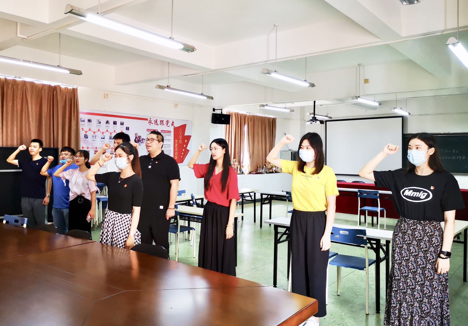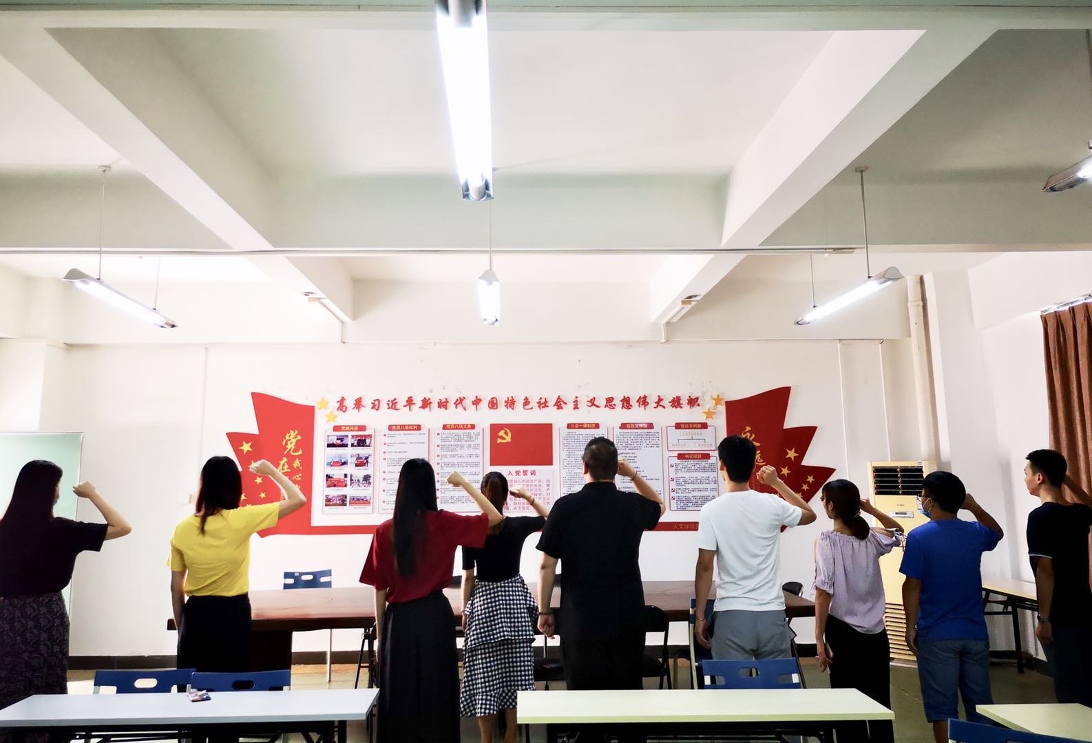 在中国共产党成立99周年之际,为进一步增强太阳成tyc33455cc党员的党性认识和责任意识,激励党员坚定爱党、信党、跟党走的坚定信念,6月30日下午,太阳成tyc33455cc员工党支部在人文艺术楼513会议室开展了“不忘初心,牢铸党魂”迎“七一”学党章重温入党誓词活动。太阳成tyc33455cc党总支副书记彭聪、组织员王文龙、员工党支部书记季晓婷、全体辅导员以及在校员工党员参与活动,活动由季晓婷书记主持。