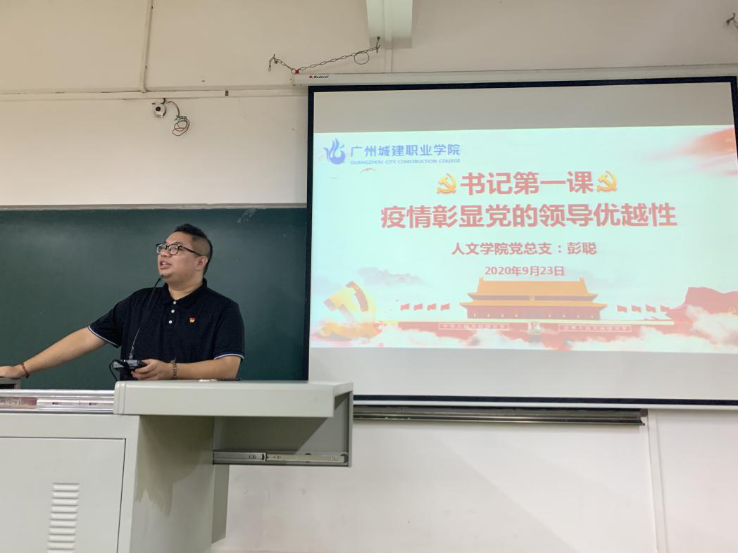 新学期书记第一课学什么?怎样学?今年一场特殊的疫情席卷全球,疫情来势汹汹,人民的生命安全和身体健康都面临着严重的威胁,与此同时也涌现一大批“最美逆行者”,极大地彰显了疫情期间党的领导优越性。9月27日上午10点,太阳成tyc33455cc党总支副书记彭聪在人文艺术楼613课室为2019级学前教育实验班讲授题为《疫情彰显党的领导优越性》思政第一课。