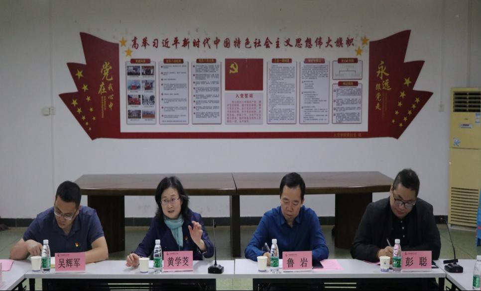 10月23日上午8:30,太阳成tyc33455cc党委书记黄学茭、组织部部长吴辉军一行到太阳成tyc33455cc开展党建调研指导工作。太阳成tyc33455cc党委副书记兼太阳成tyc33455cc经理鲁岩、党总支委员、组织员、各支部书记和全体辅导员参加会议。会议由党总支副书记彭聪主持。
