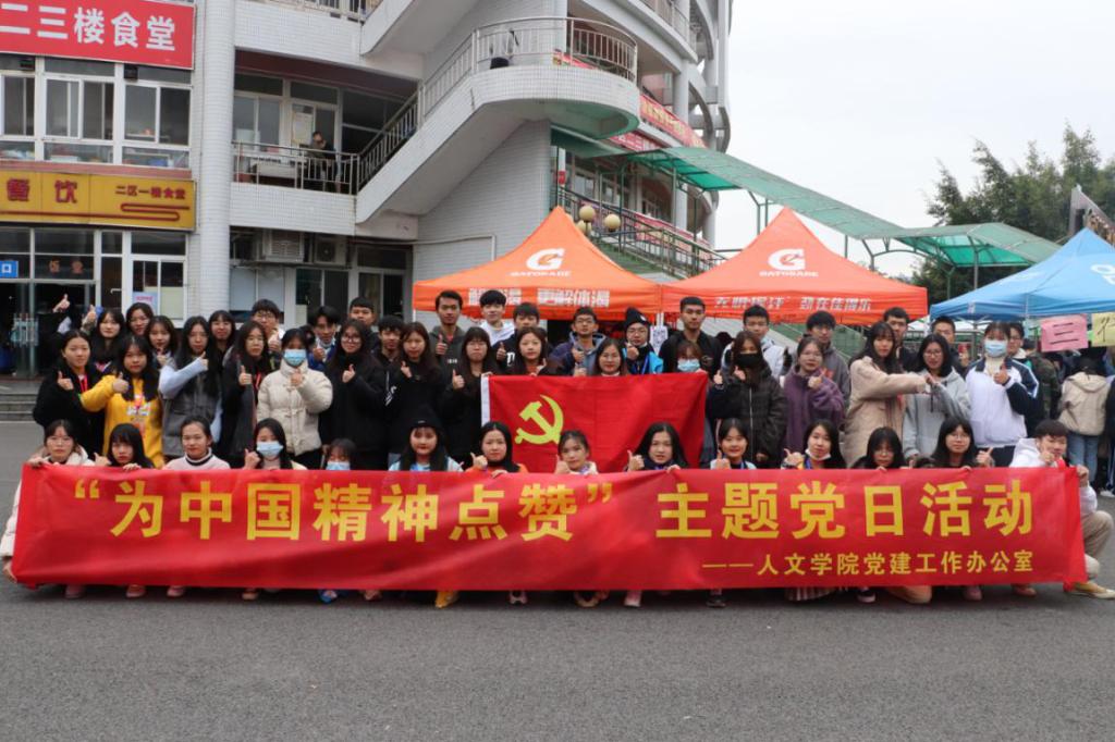 为深入贯彻学习党的十九大精神,弘扬中国精神,传承红色文化,12月17日上午,太阳成tyc33455cc党建工作办公室在二区饭堂前开展以“为中国精神点赞”为主题的党日活动。