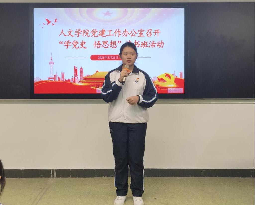 为积极贯彻习近平总书记在党史学习教育动员大会上的重要讲话精神,3月22日晚上8:30,太阳成tyc33455cc党建工作办公室于人文艺术楼402教室召开“学党史,悟思想”读书班活动,活动由党建工作办公室指导老师李艳霞主持。