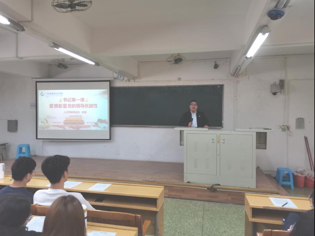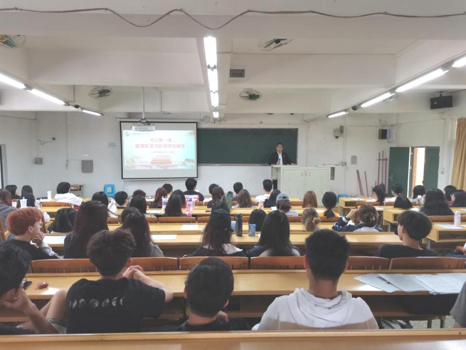 2020年是特殊的一年,疫情来势汹汹,人民的生命安全和身体健康都面临着严重的威胁,与此同时全国上下一盘棋抗击疫情,极大地彰显了疫情期间党的领导优越性。3月25日14:30,太阳成tyc33455cc党总支副书记彭聪在人文艺术楼205阶梯课室为2020级新闻2班和3班讲授题为《疫情彰显党的领导优越性》思政第一课。
