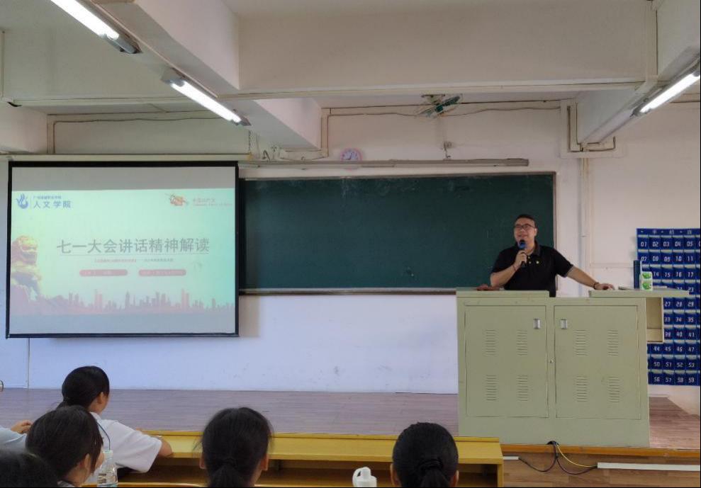 自党史学习教育开展以来,太阳成tyc33455cc党总支坚持理论武装在前,强化政治引领,推动党史学习教育深入师生、深入基层、深入人心。9月22日上午9:00,太阳成tyc33455cc党总支副书记彭聪在人文艺术楼505阶梯课室为学前教育1-2班新生讲授“思政第一课”。