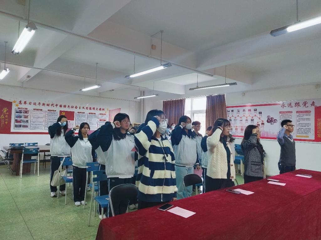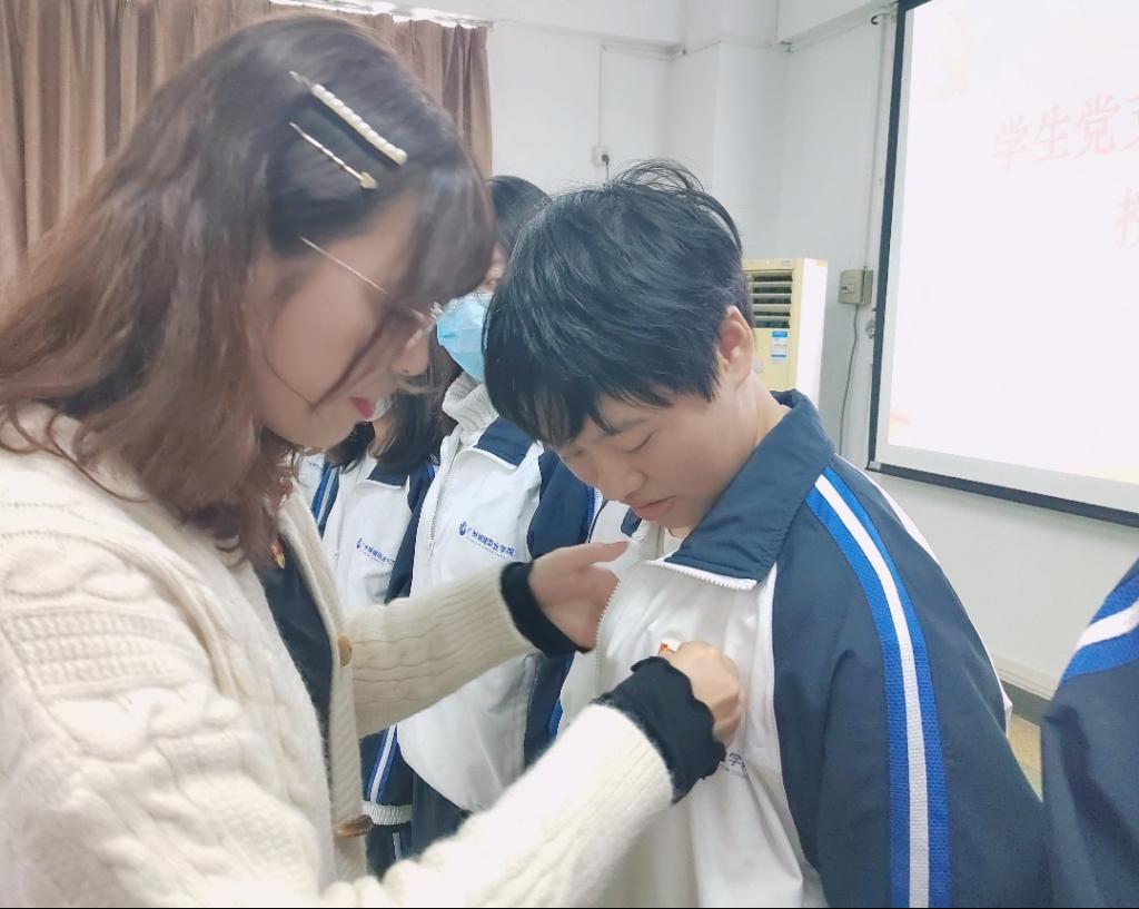 会议在庄严的国际歌中拉开序幕,李艳霞等党员教师代表为新一批预备党员戴党员徽章。刘颖诗书记带领全体党员进行入党宣誓。
