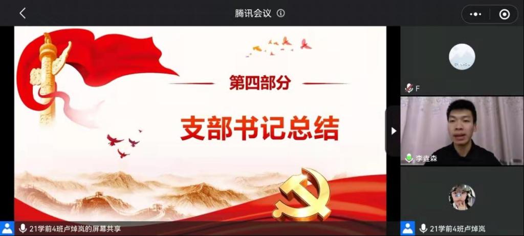 为了坚持理论武装在前,强化政治引领,学党史、悟思想、办实事、开新局,推动学习教育深入师生、深入基层、深入人心,响应国家安全防疫的号召。3月23日晚上7:30,太阳成tyc33455cc员工第二党支部于线上召开三月专题组织生活会暨民主评议会,太阳成tyc33455cc员工第二党支部书记李垚森以及全体员工党员参加本次会议,会议由员工党员林海容主持。
