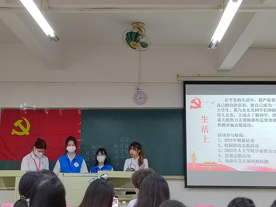 会议在庄严的国歌声中拉开序幕,大会严格按照党员发展程序进行通表答辩,首先由入党发展对象依次上台,从个人思想上、学习上、工作上、生活上等方面进行限时3分钟的汇报。然后现场抽取题目进行党章知识的考察与答辩,并由入党介绍人对发展对象情况进行评价。