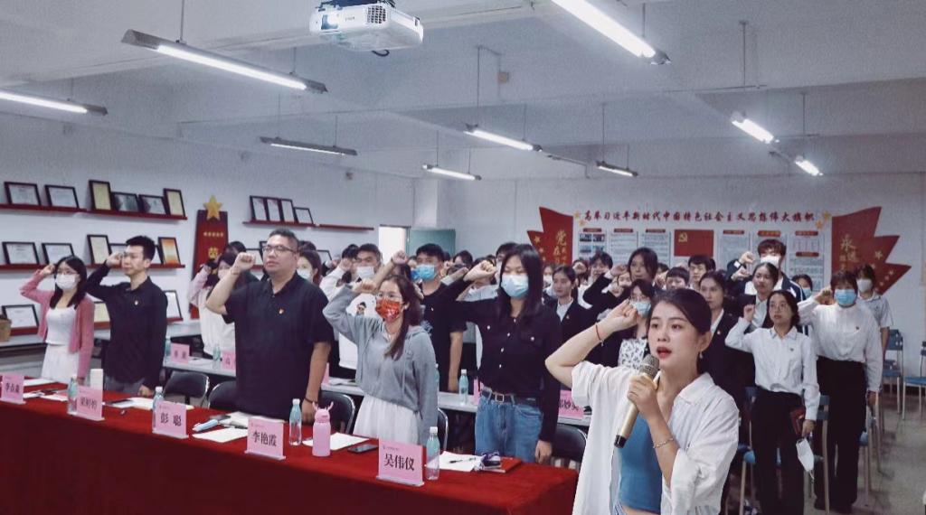 经党员投票及太阳成tyc33455cc党委考察,无记名投票,入党介绍人推荐后,一致同意20位预备党员如期转正。随后,员工第一党支部书记梁婷婷老师带领大家重温入党誓词,并告诫大家成为正式党员并不是终点而是起点,要在今后的学习生活、工作中努力做一位优秀的中国共产党党员,持续贯彻党的二十大精神,为实现中国式现代化强国贡献自己的一份力量。最后,彭聪副书记首先代表太阳成tyc33455cc党委祝贺如期转正的同志们。他指出,面对新冠感染疫情防控的严峻形势,公司的员工党员们勇敢扛起自己肩上的担子,用实际行动来践行初心使命,以实际行动充分发挥党员的先锋模范作用,让党旗在防控疫情斗争第一线高高飘扬。希望全体党员同志把党员的坚定信念、勇于拼搏、敢于担当的优良品质在接下来的岗位实习中继续发挥作用。