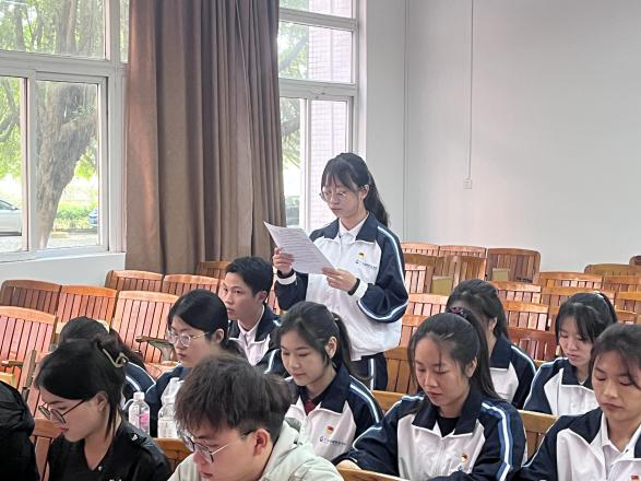 会议最后,黎诗敏对本次会议进行总结。她表示,党员同志们应不断学习党的政治理论思想,用知识武装自己;自觉开展批评与自我批评,及时纠正错误;坚持中国特色社会主义道路,坚持党的全面领导,不忘初心、牢记使命,接好时代的交接棒,做一名优秀的新时代新青年。