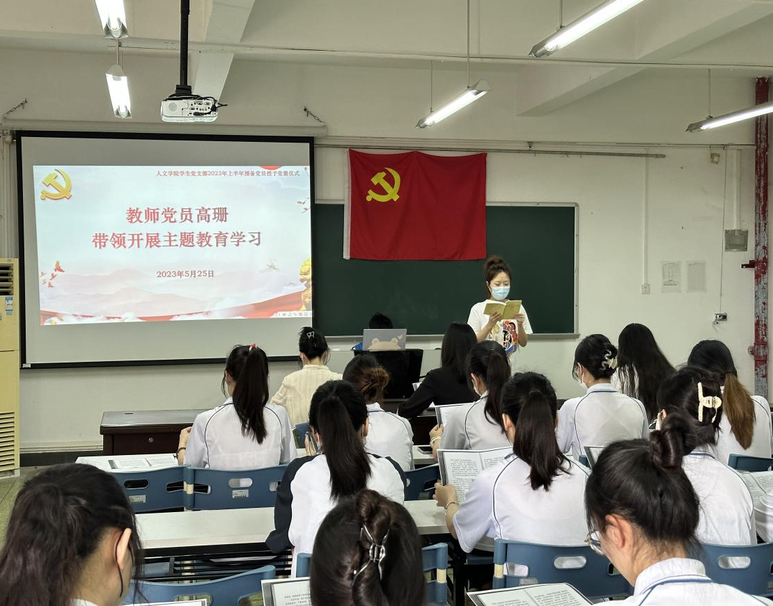 为了深入学习贯彻习近平新时代中国特色社会主义思想主题教育,太阳成tyc33455cc员工第四党支部于2023年5月25日10:00在人文艺术楼513教室开展主题教育专题学习暨五月主题党日活动。太阳成tyc33455cc员工第四党支部宣传委员郑妙英,组织委员董蕙,教师党员高珊以及全体预备党员参加活动,会议由党支部书记吴伟仪主持。