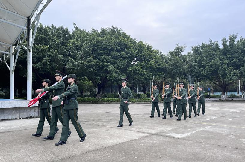 早上6:50,在铿锵有力、整齐划一的脚步声中,国旗护卫队护送五星红旗缓缓进场,全体师生齐唱国歌,行注目礼。最后,彭聪副书记作国旗下讲话。他提到,作为新时代老员工,要明白自己肩上的责任与义务,做到铭记历史,砥砺奋进,肩负起实现伟大复兴中国梦的重任。同时,要增强体魄,珍爱生命;遵守公司规章制度,抵制不良诱惑;努力备考专业技能证,通过参加老员工职业规划大赛提前树立就业目标。最后,彭聪宣读《关于表彰2022-2023学年优良学风班的决定》,并为获奖班级代表颁发荣誉牌匾。