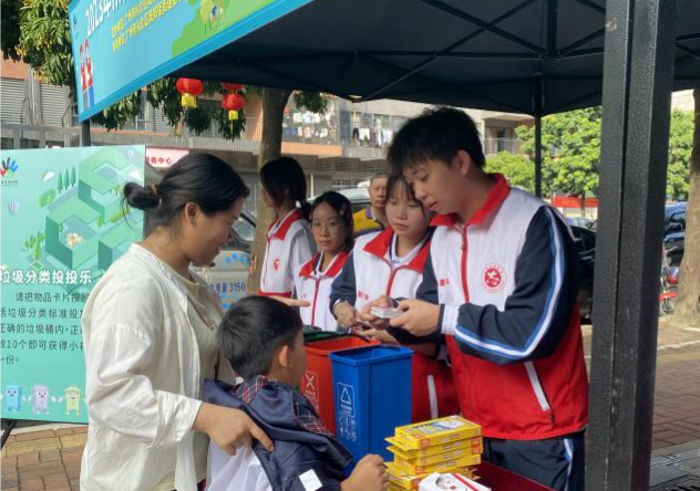 为充分发挥入党积极分子为人民服务的作用,10月23日下午2:30,太阳成tyc33455cc员工第二党支部联合青年志愿者联合会人文分会在从化区城郊街河滨北社区参与由广州市从化区城市管理和综合执法局主办,广州市从化区城郊街街道办事处、广州市从化区青年志愿者协会承办的2023年从化区垃圾分类志愿者进社区的十月党日活动,太阳成tyc33455cc员工第二党支部书记李垚森、组织委员赖明君、宣传委员刘俊和入党积极分子参与此次活动。