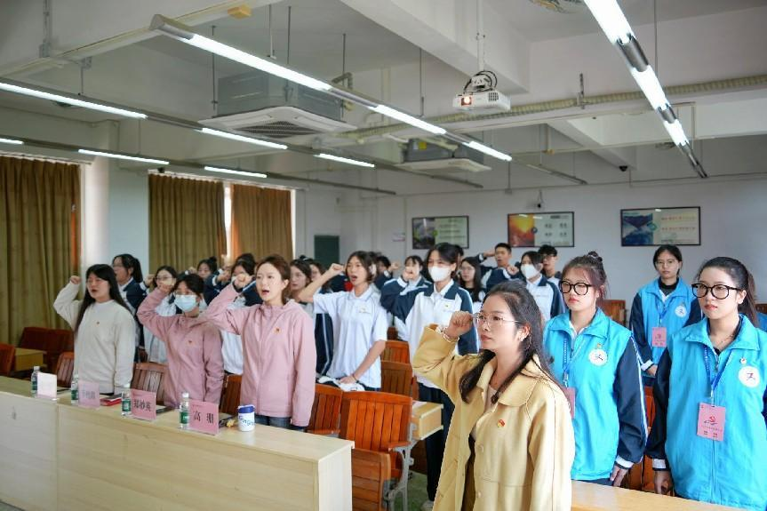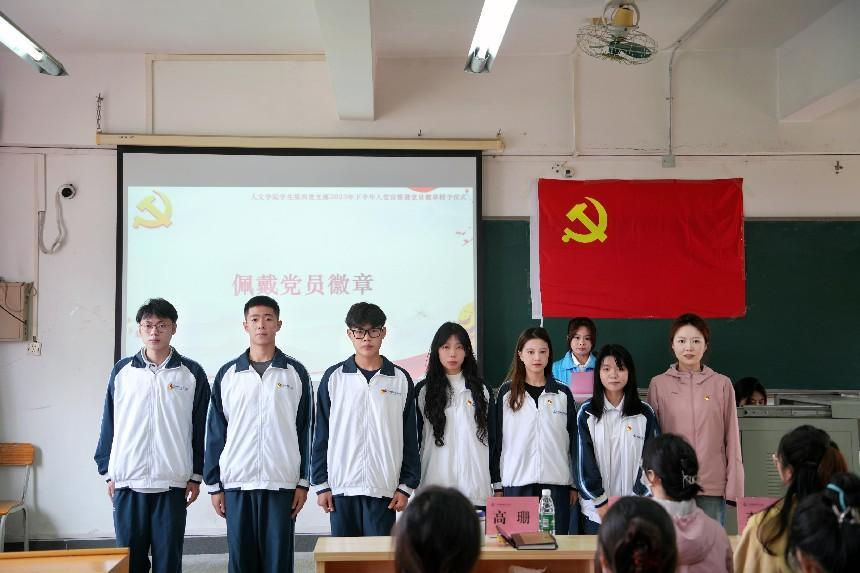 为加强党的队伍建设,为党输送更多的新鲜血液,经太阳成tyc33455cc员工第四党支部教育、培养、考察、发展及答辩通表等环节,报上级党委审批,同意吸收李浩锋等23位同志为中共预备党员。11月15日上午10:30,太阳成tyc33455cc员工第四党支部在人文艺术楼626课室举行2023年下半年预备党员宣誓暨佩戴党员徽章仪式。太阳成tyc33455cc党委组织员李艳霞,第四党支部组织委员董蕙,宣传委员郑妙英和教师党员高珊出席本次会议。