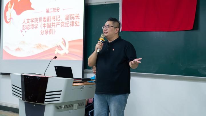 彭聪领学习近平总书记关于党纪学习教育的重要讲话精神和重要指示批示精神,重点解读《中国共产党纪律处分条例》,他表示,开展党纪学习教育对于加强党的纪律建设、提高党员党性修养、增强党组织凝聚力和战斗力等方面都具有重要意义,希望毕业生党员要按照《关于在全党开展党纪学习教育的通知》要求,原原本本学、逐章逐条学、联系实际学,边学习、边思考、边讨论,提升自身党性修养,进入社会后,要继续不忘初心,牢记使命,坚定理想信念,树立长远目标,自觉将个人价值追求与党和人民的事业紧密联系起来,争做新时代的奋斗者和追梦人。