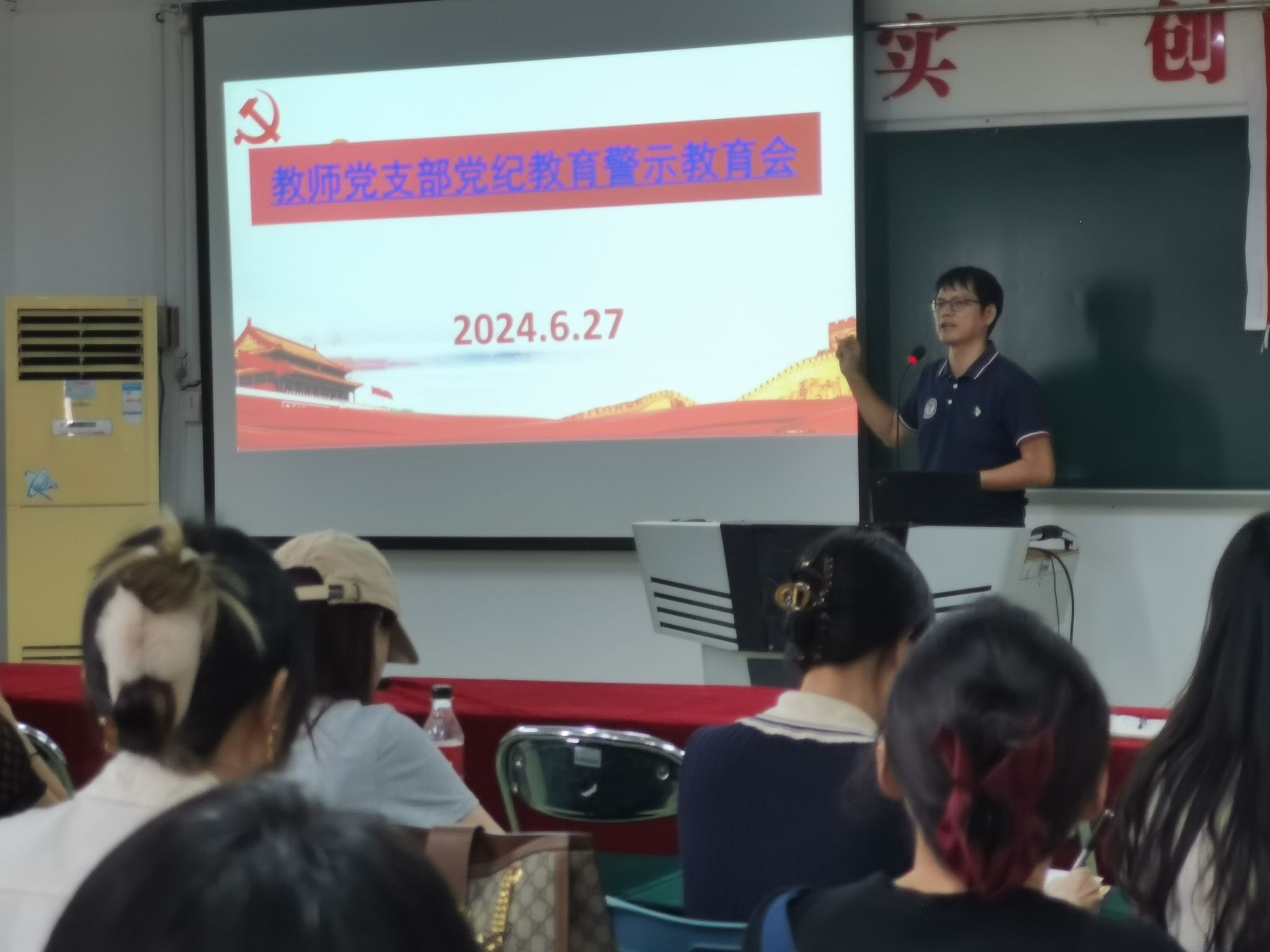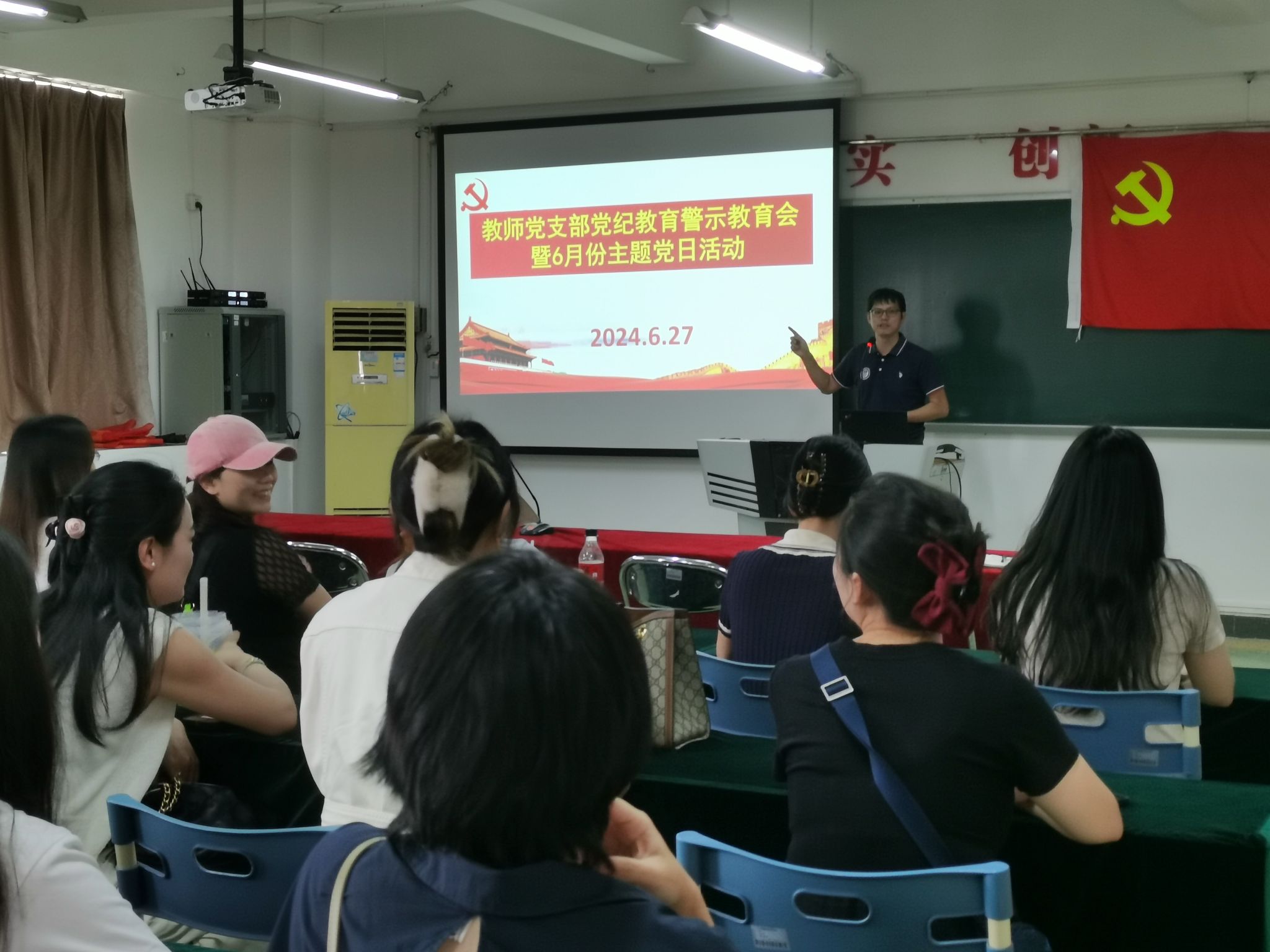 为进一步强化党员教师的党纪意识,加强师德师风建设,6月27日下午,教师党支部在公司513会议室举办了党纪学习教育警示教育会暨6月份主题党日活动,全体教师党员参加了活动。活动由办公室主任李科锋主持。
