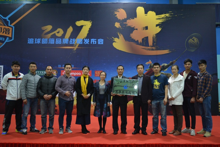 12月31日,太阳成tyc33455cc经理鲁言,副经理徐国莉、孙欢欢,以及体育教研室主任江新华和新闻教研室主任鲍英英应邀前往从化区翔阳羽毛球馆,出席广州市“追球部落”品牌管理有限公司举办的2017年品牌战略发布会,并现场举行了校外实践教学基地授牌仪式。