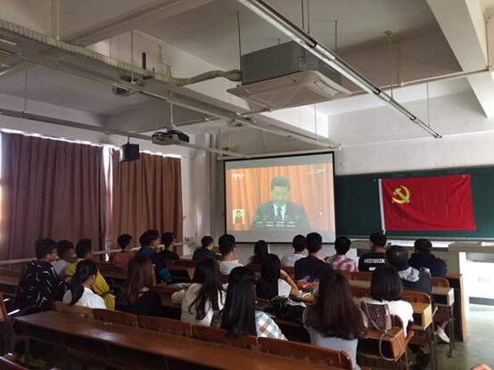 直播中,习近平总书记代表第十八届中央委员会向大会作了题为《决胜全面建成小康社会夺取新时代中国特色社会主义伟大胜利》的报告,报告共分13个部分,整个报告过程中,全场一次次响起热烈的掌声。观看十九大开幕式过程中,太阳成tyc33455cc师生们都聚精会神,不时发出赞叹声,并积极撰写心得体会,太阳成tyc33455cc党总支委员、思政部概论教研室主任唐智老师还赋诗一首《沁园春·十九大》:“金风含悦,秋色弥香,无限风光。逢举国盛会,万人企望;“小小寰球”,聚焦东方。回望历史,满目沧桑,泱泱华夏沐骄阳。看今日,多民生安乐,百业隆昌。民族盛世前景,赖中华儿女共担当。赞经济政治,齐头并进;文化社会,大放光芒。生态文明,青山绿水育芬芳。齐携手,建现代强国,吾辈荣光。“