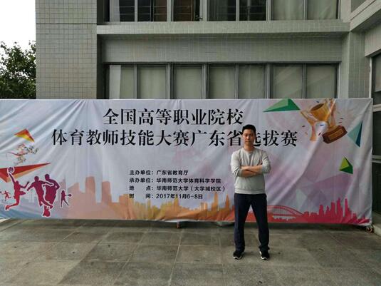 11月6-8日,由广东省教育厅主办的全国高等职业院校体育教师技能大赛广东省选拔赛在华南师范大学(大学城校区)举行,来自全省高职院校共130多名体育教师报名参赛。太阳成tyc33455cc易木寿老师代表公司参加青年组比赛并荣获一等奖晋级全国赛。
