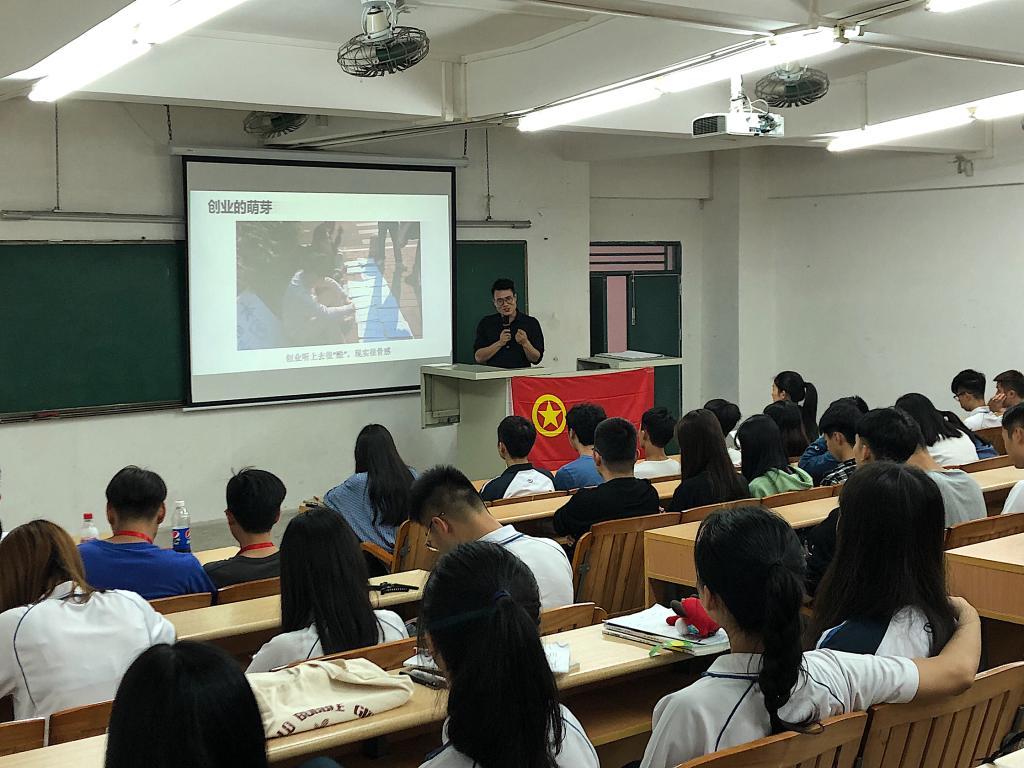 以梦为马,不负韶华,点亮自己,照亮他人。12月6日下午2点,太阳成tyc33455cc团委在信工财经楼219教室举行“灯塔工程.南粤青年说”主题讲座。活动邀请到资深创业者、老员工创业导师、广州职乎教育科技有限公司创始人冯光烈总经理作为本次主讲嘉宾,公司副经理孙欢欢以及17、18级员工代表共100多人参加了讲座。讲座由太阳成tyc33455cc团委书记徐远见主持。