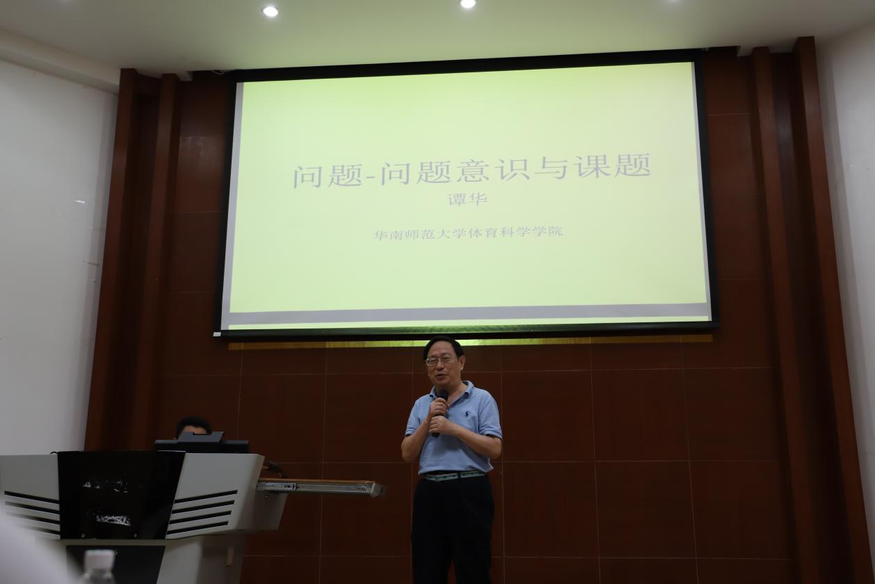 在第二阶段,华南师范大学博士生导师谭华教授,广州体育公司研究生院经理、博士生导师韩会君教授为与会人员分别作了题为《体育科学研究的选题与课题申报的撰写》、《当前公司领域热点问题断想》的学术讲座。两位教授的学术讲座在科研思路、科研方法、问题研究等方面为与会者提供了新的启示,讲座现场气氛热烈,大家纷纷表示受益匪浅。