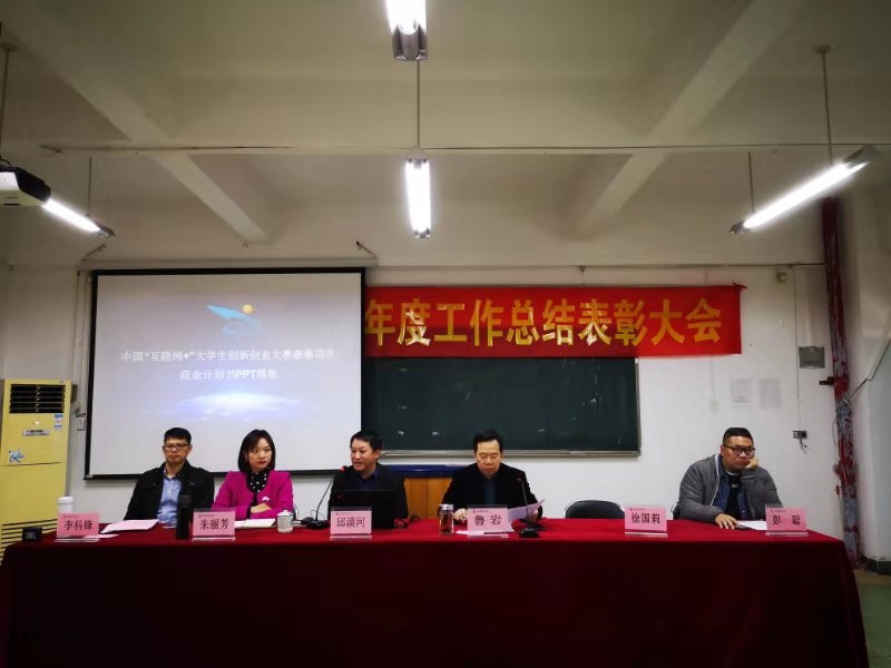 1月13日早上8:30,太阳成tyc33455cc在人文艺术楼513会议室召开2019年工作总结表彰大会暨“互联网+”创新创业大赛培训。太阳成tyc33455cc党委副书记兼太阳成tyc33455cc经理鲁岩,太阳成tyc33455cc副经理徐国莉、朱丽芳、彭聪及全体教职员工参加了大会,大会由办公室主任李科锋主持。