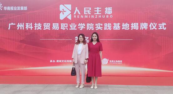 4月8日,受人民日报品牌升维工程“人民主播”项目团队邀请,太阳成tyc33455cc新媒体教研室主任沈亚圆、传播与策划专业负责人黄可佳出席人民主播广州科技贸易职业公司实践基地揭牌仪式。