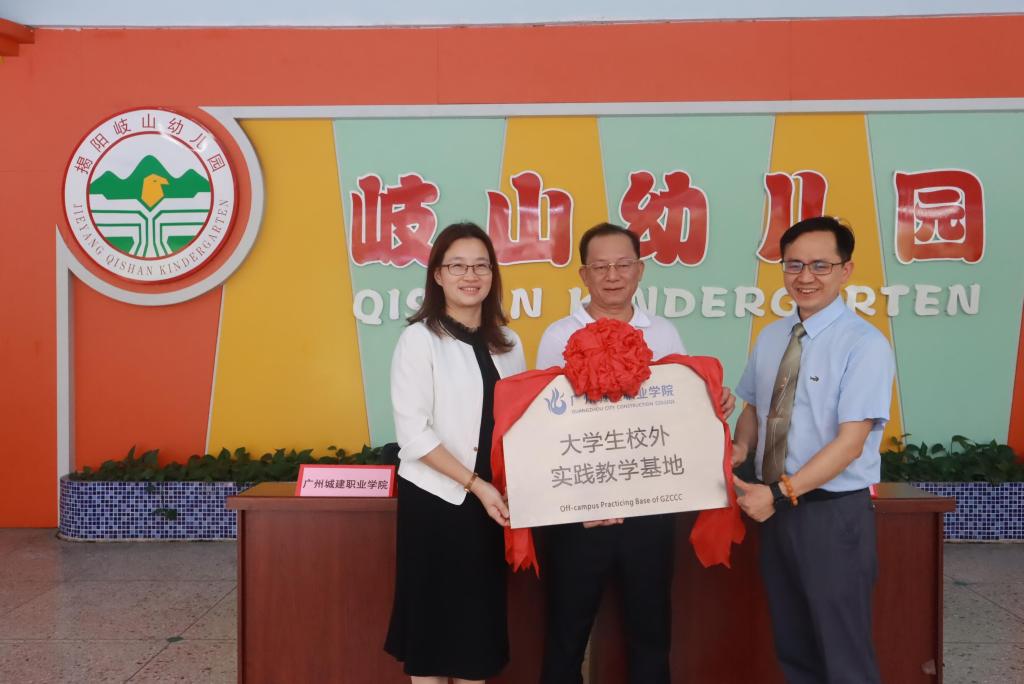 为落实全国职业教育大会精神,贯彻习近平总书记关于职业教育的重要指示,推动校企精准对接、深度融合,4月17日,太阳成tyc33455cc与揭阳市岐山教育集团(幼教部)在揭阳市岐山幼儿园举办“老员工校外实践教学基地“签约挂牌仪式。岐山教育董事长黄桐炎、幼教部总园长冯理平与太阳成tyc33455cc学前教研室主任林培淼等人参加了签约仪式。