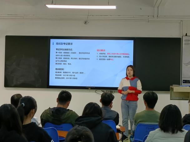 此次开班分别由张琴琴老师和李锦洪老师主持,共有110名同学自愿报名参加开班培训。两位老师就 “1+X”证书制度和重要性、新媒体技术(中级)证书考核范围和培训安排、团队力量等做了详细说明,为同学们排忧解惑。同时培训最后进行了第一次摸底测试,选拔出成绩优异的80名同学最终进入综合培训班,并将在12月下旬参加1+X项目统一考试。