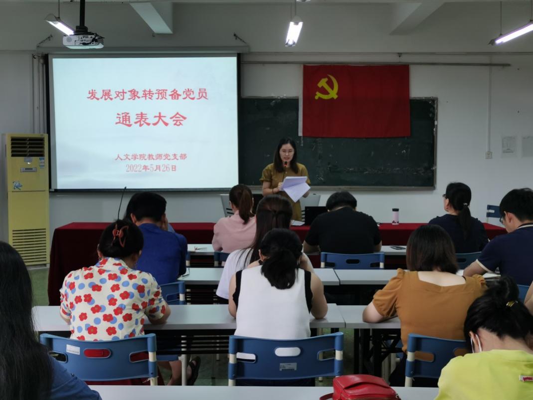 随后,大会进行发展对象通表环节。支部书记尚东玲就发展对象接收为预备党员的具体流程做详细说明。发展对象袁跃宁老师向党组织汇报自己对党的认识、入党动机、工作学习和家庭等情况。入党介绍人依次发表意见,其他到会党员对其进行充分讨论。经与会正式党员充分酝酿及无记名投票,同意发展袁跃宁为中共预备党员。