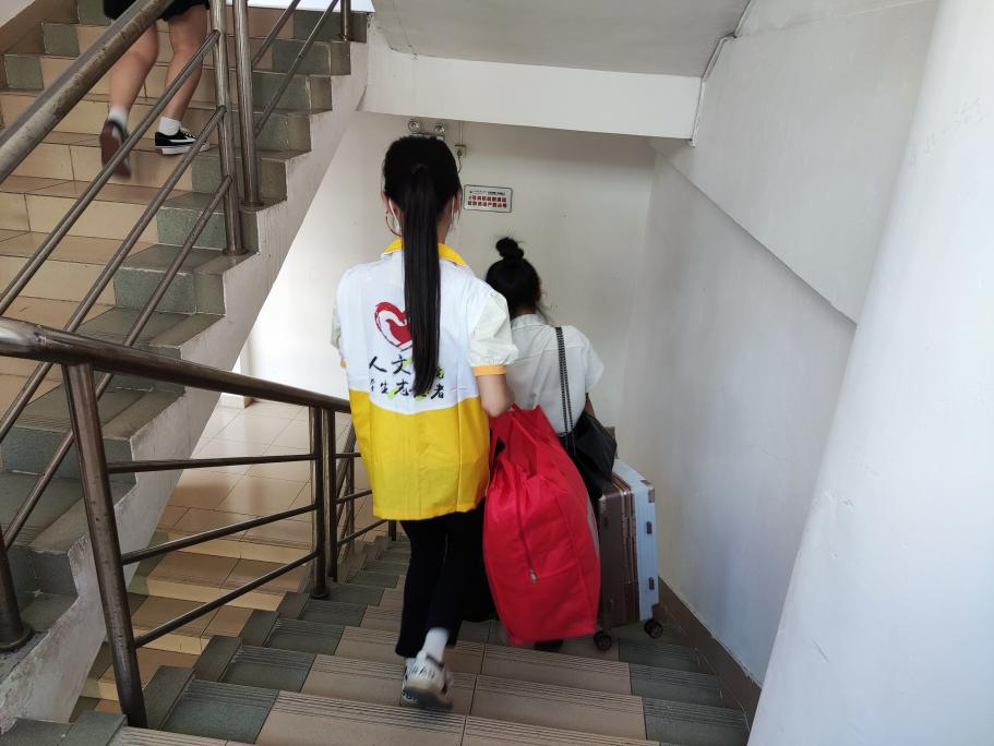 受疫情影响,今年毕业生离校工作时间紧、任务重、难度大、行李量大厚重,但在公司广大志愿者的热情帮助下,毕业生的行李高效有序地转运下楼。志愿者不断上楼下楼,往返于宿舍和校门口,加上天气炎热,不少志愿者都大汗淋漓,气喘吁吁,但是只要毕业生有需要,她们就毫不犹豫上前给予帮助,毕业生纷纷给志愿者点赞致谢。