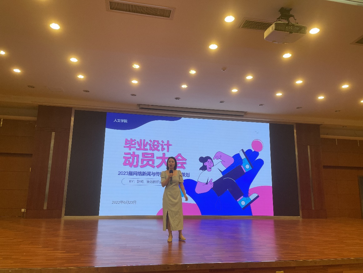 为扎实推进员工毕业设计指导工作,6月23日下午,新媒体专业群在人文艺术楼报告厅召开2020级网络新闻与传播、传播与策划等两个专业员工毕业设计动员大会。新媒体专业群全体教师及20级全体毕业生共459人参加了会议。会议由何婷主持。