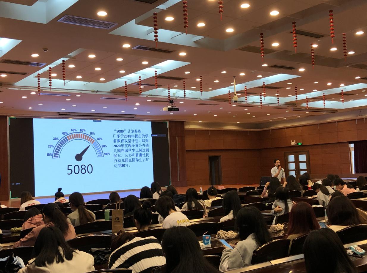 讲座中,李元庆以自身十多年创业经历分享了创办托育机构的宝贵经验,对幼儿教师发展前景进行详细分析。他指出,“5080”计划是指广东省在2018年提出的学前教育攻坚计划,即到2020年实现全省公办幼儿园在园员工比例达到50%,公办和普惠性民办幼儿园在园员工占比例达到80%,建议同学要充分利用国家大力支持公办和普惠性民办幼儿园的契机,要树立奋斗目标,有目标才有动力去做,同时要调整好自己的心态,努力提升自己专业能力和职业竞争力,必定能够找到心仪的工作。同时,他从坚持学习和努力工作的层面给予方法上指导,并围绕好好实习、认真工作、默默学习和为人处世这四个方面提出建议策略,提醒同学们找一份工作不能仅看到这份目前能提供给你的,要放大格局,跳跃思维,去预见你想看到的,然后通过努力提升自己竞争力去实现目标。他通过引用自己的亲身经历和发生在身边的事情,给即将踏入社会的同学们提供建议,也给同学们搭建了一个和企业沟通的微信平台,使同学们受益匪浅。