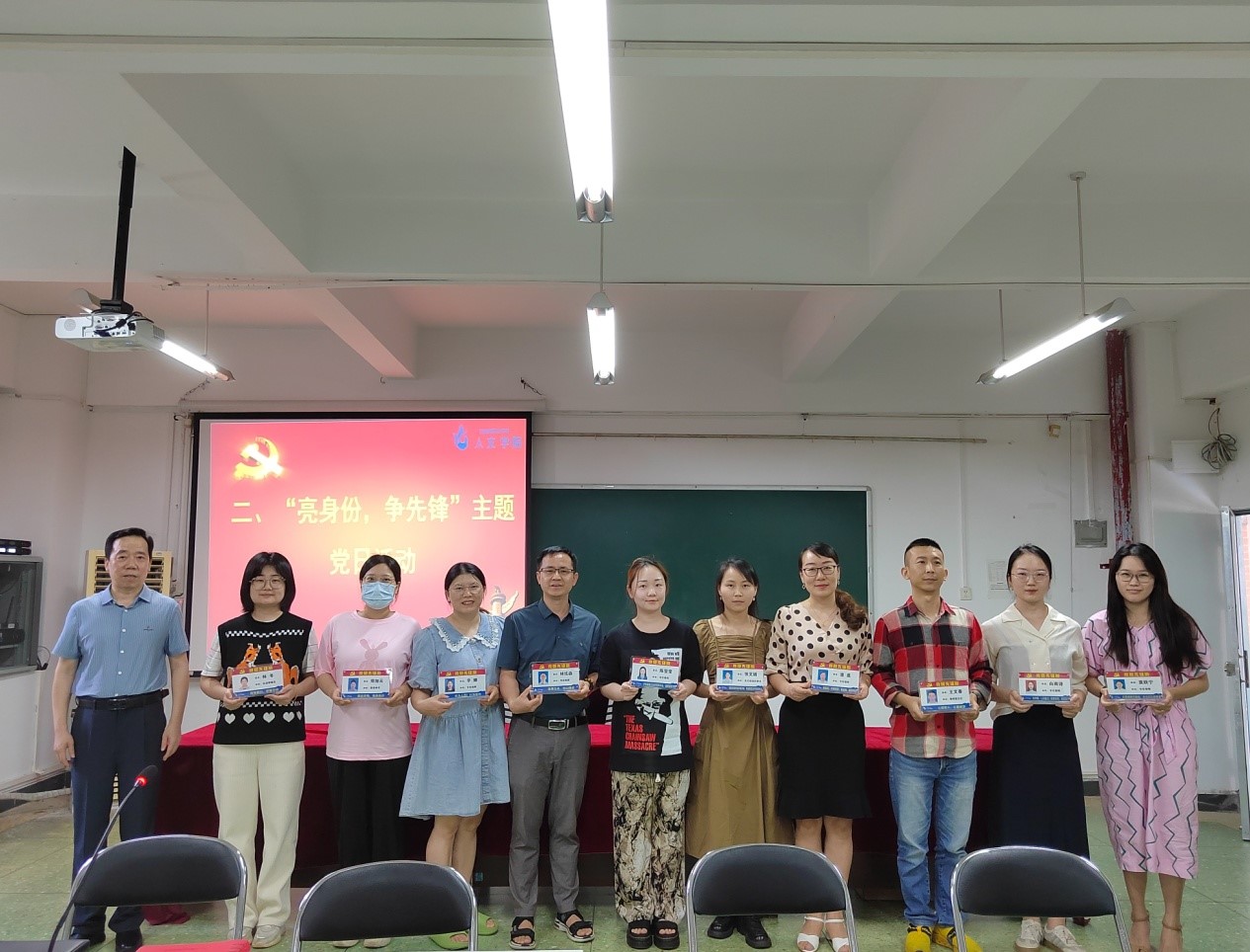 会议还开展了“亮身份、争先锋”主题党日活动,鲁岩为教师党员颁发党员先锋岗牌。