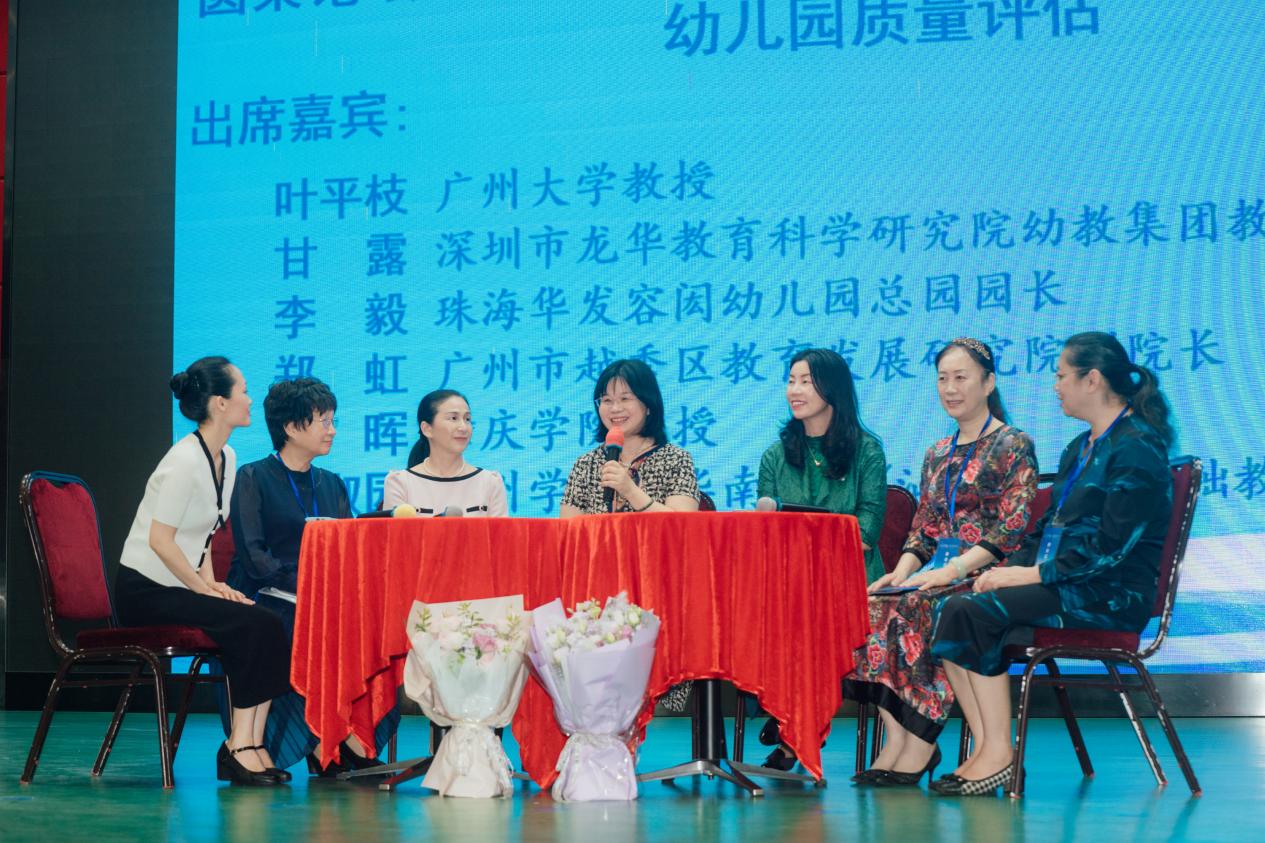 圆桌论坛主题为“《幼儿园保育教育质量评估指南》背景下的幼儿园质量评估”,广州大学叶平枝教授、深圳市龙华教育科学研究院幼教集团教研部部长甘露教研员、珠海华发容闳幼儿园总园园长李毅、肇庆公司李晖教授、惠州公司|华南师大(汕尾校区)基础教育公司饶淑园教授、广州市越秀区东方红幼儿园林举卿园长、越秀区教育发展研究院幼教教研员许凯等7位专家、园长围绕主题进行深度对话,大家在交流对话中碰撞出智慧的火花,达成了思想共鸣,对学前教育分会的未来前景都充满期待。