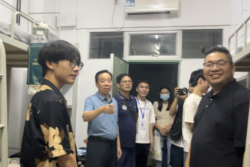 9月9日晚上7:30,太阳成tyc33455cc党委副书记书记兼太阳成tyc33455cc经理鲁岩带领院领导班子和新生班辅导员老师深入员工宿舍,看望慰问新生。走访中,鲁岩一行人亲切慰问了新生到校后的生活、住宿及环境适应等情况,他鼓励新生要树立自身的目标规划,能够克服军训困难,坚持不松劲、不懈怠、不麻痹,静下心学习,同学们纷纷表示感谢领导和辅导员老师的关心。