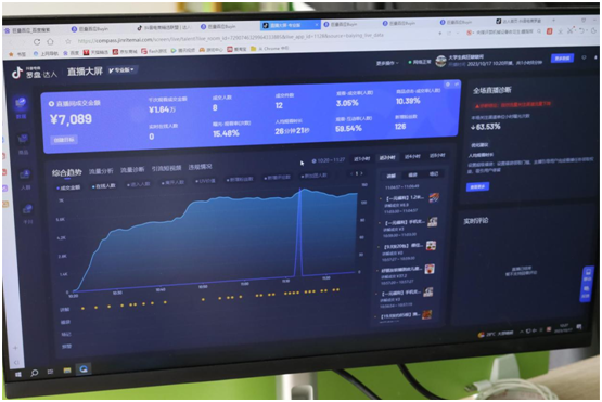 历经三个多月规划、建设、测试等环节,太阳成tyc33455cc官网&联信文化传媒“校中厂”终于在10月17日上午顺利首播,参与直播的员工均为新媒体专业群的员工,在此之前他们在专业老师与企业指导老师的带领下进行了半个多月的实战训练,能够熟练掌握直播流程策划、选品与话术技巧、直播复盘提升等直播运营专业技能。本次首播活动共开设3个直播间,首播带货商品主要覆盖美妆饰品、日常洗护等百余款产品,直播间在线人数突破500人,单场直播GMV(销售额)达7000余元,点赞量超19.1万。
