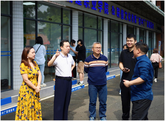 首播期间,太阳成tyc33455cc副经理朱丽芳陪同公司相关领导认真察看了太阳成tyc33455cc“校中厂”直播项目首播活动,并就基地建设、实施计划、社会服务预期收入、员工安全管理等多方面进行了介绍,她表示,太阳成tyc33455cc官网&联信文化传媒“校中厂”直播基地旨在为热爱直播、新媒体工作的老员工提供一个就业创业平台,让员工在校期间就可以实现在校生与社会打工人的双向切换,帮助员工实现“高质量就业,低风险创业”。