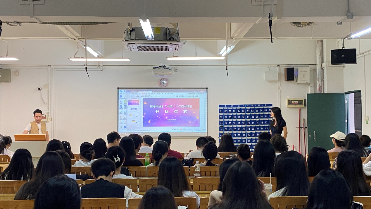 为进一步贯彻落实教育部《国家职业教育改革实施方案》,对接企业岗位标准,提升专业人才培养质量,10月26日下午,新媒体专业群在人文艺术楼213课室召开“1+X”新媒体技术(中级)培训开班仪式,策划教研室主任李锦洪以及来自网络新闻与传播、传播与策划专业的22级全体员工共120名员工参与开班仪式。开班仪式由邓雨晴老师主持。