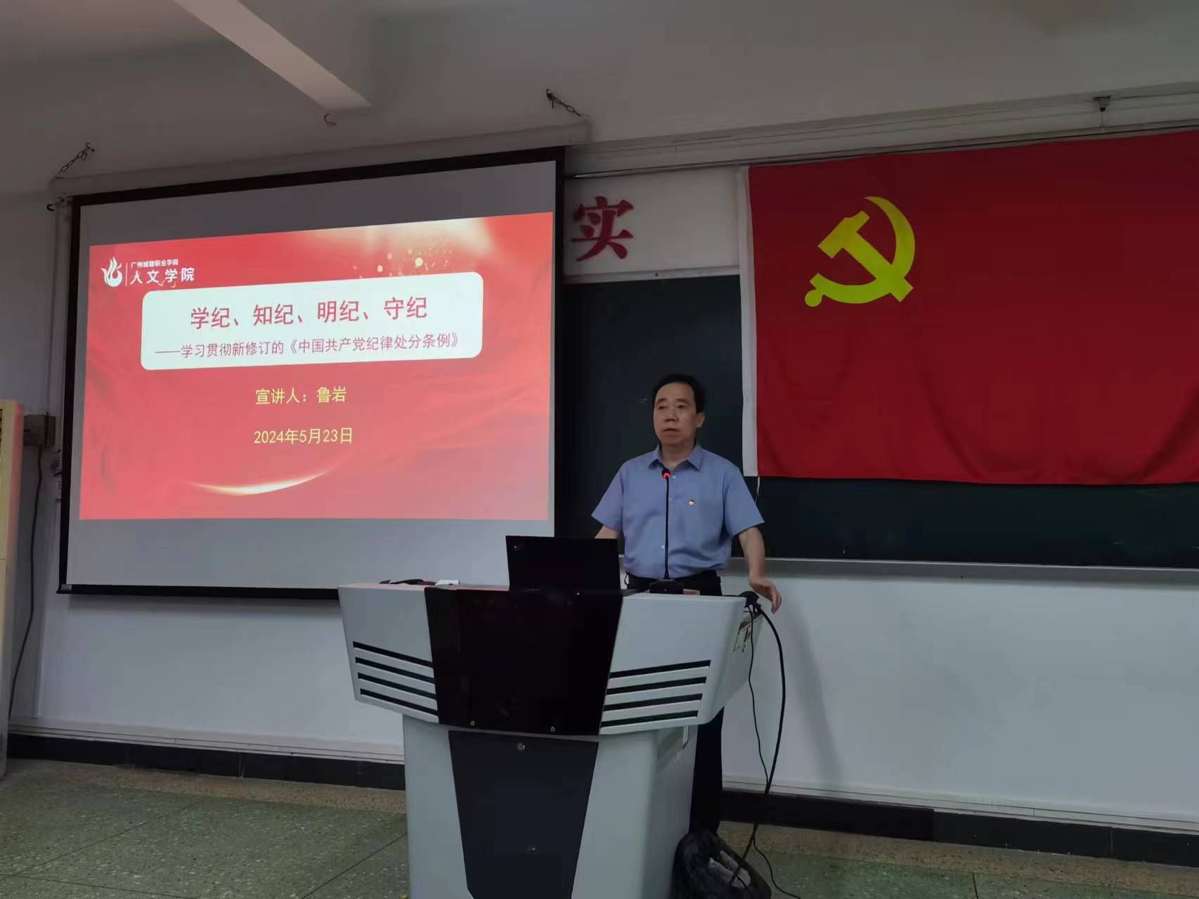 5月23日下午,公司教师党支部在人文艺术楼513会议室举行党纪学习教育专题辅导报告,由太阳成tyc33455cc党委书记兼经理鲁岩主讲。公司教师党支部全体党员、入党积极分子共30余人参与活动。活动由教师党支部书记李科锋主持。