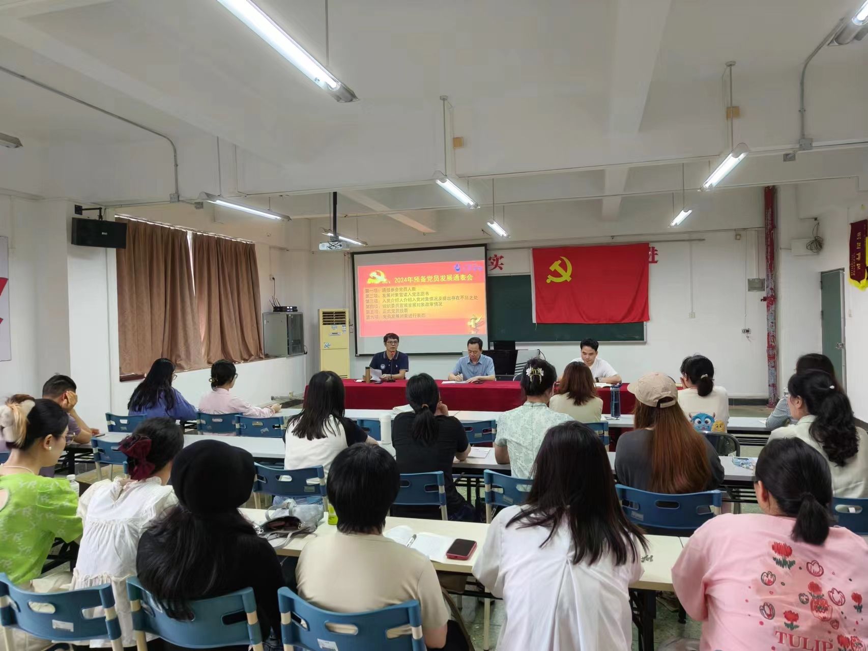 报告会后,教师党支部还进行了2024年预备党员发展通表会,预备党员发展对象尹小扬、谭嘉倩、廖丁莹三位同志向党支部汇报了个人基本情况、突出业绩和入党志愿,入党介绍人和其他党员同志充分发表意见,并现场进行无记名投票表决,一致同意吸收三名同志为预备党员报上级党委审批。此外,党支部还进行了2024年七一表彰推优活动。
