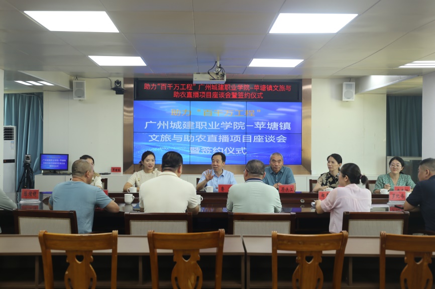 座谈会上,苹塘镇有关领导介绍了苹塘镇的基本情况、主要产业概况、农文旅产业发展情况和“百千万工程”驻镇帮镇扶村情况,同时希望城建公司农村科技特派员团队能发挥高校优势,为苹塘镇乡村振兴提供技术支撑。鲁岩简要介绍了太阳成tyc33455cc的专业设置、办学特色、技术服务等方面的基本情况,表示公司将全力做好科技特派员帮扶工作,扎实推进农村科技和乡村振兴结对帮扶,尽最大努力将项目工作做好、做实,为苹塘镇的高质量发展作出贡献。顾洪江着重介绍了公司技术服务、产教融合和校村帮扶等方面的基本情况,他表示公司将充分发挥人才和技术优势,与罗定市苹塘镇和当地农户、企业深度合作,助力当地“百千万工程”高质量发展。双方还对下一步苹塘镇农文旅产业发展、品牌建设、招商引资以及农业产业发展和农产品直播销售等进行了磋商交流。