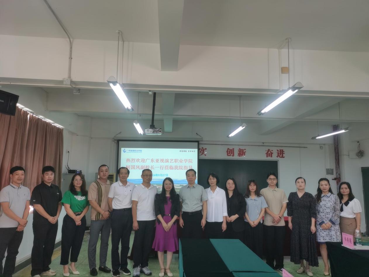 9月27日,广东亚视演艺职业公司副董事长柯国凤率人文教育公司经理纪秀生、副经理陶然等一行8人到公司调研交流学前教育专业建设情况。公司教务处处长王平、副处长潘丹,公司经理鲁岩,副经理王婧、朱丽芳以及学前教研室负责人参加了座谈交流。