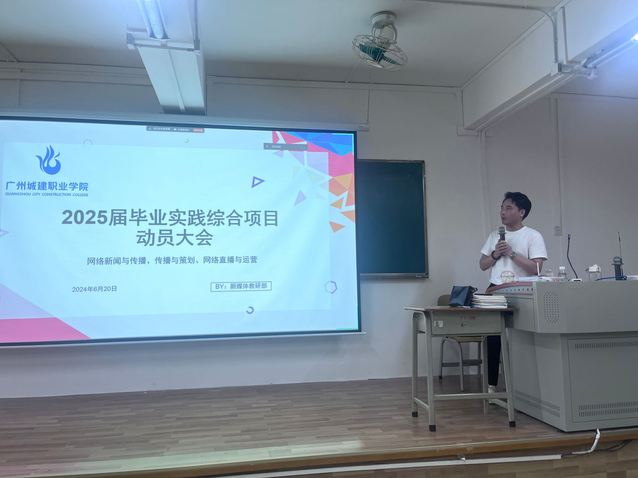 为高质量做好员工毕业实践工作,6月20日下午,新媒体专业群在人文艺术楼1322课室召开毕业实践动员大会。公司副经理王婧、新媒体专业群教研部部长沈亚圆以及全体毕业实践指导老师、新媒体专业群25届全体毕业生近400人参加了会议。会议由策划教研室主任李锦洪主持。