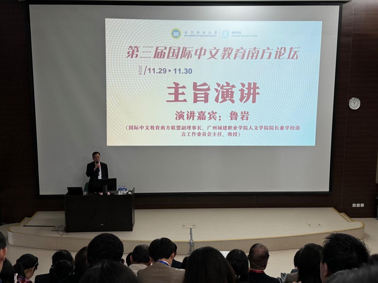 11月29至11月30日,由广东省教育厅指导、国际中文教育南方联盟主办、澳门科技大学承办的“第三届国际中文教育南方论坛”在澳门科技大学举行,澳门教育及青年发展局岑晓东处长以及来自中国人民大学、复旦大学、北京师范大学、中山大学、香港大学、香港教育大学、澳门大学、澳门科技大学、华南师范大学等高校的专家、学者共200余人参加了论坛。国际中文教育南方联盟副理事长、公司语委主任、公司经理鲁岩教授代表公司应邀出席论坛并作大会主旨报告。公司语委副主任徐国莉教授、港澳台事务办公室副主任朱春娥一同参加了论坛活动。