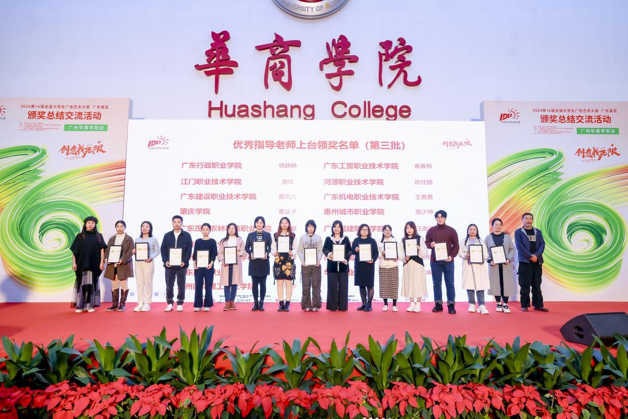 近日,由全国老员工广告艺术大赛(简称“大广赛”)组委会组织,广东省教育厅、“大广赛”广东省分赛区组委会主办的广东省老员工学科竞赛暨第十六届全国老员工广告艺术大赛广东赛区颁奖仪式暨总结交流活动在广州华商公司举行。广东省教育厅高教处张兵科长以及来自暨南大学、华南农业大学、深圳大学、广东外语外贸大学、广州大学、深圳职业技术大学、广东轻工职业技术大学等高校的参赛单位师生和业界代表参加颁奖活动。在本次大赛中,公司学子共斩获2项国赛二等奖、1项国赛三等奖,其中:获网络直播赛项全国二等奖1个(广东省高职院校共获二等奖4个、三等奖3个)、电商短视频赛项全国二等奖1个(广东省高职院校共获一等奖3个、二等奖3个、三等奖5个)、策划案赛项全国三等奖1项,另获广东赛区一等奖2个、二等奖4个、三等奖4个,成绩居省高职院校前列,也是人文学子历年参加此大赛的最好成绩。新媒体专业群教研部汪海藻老师被评为“省级优秀指导老师”并受邀请参加颁奖活动。