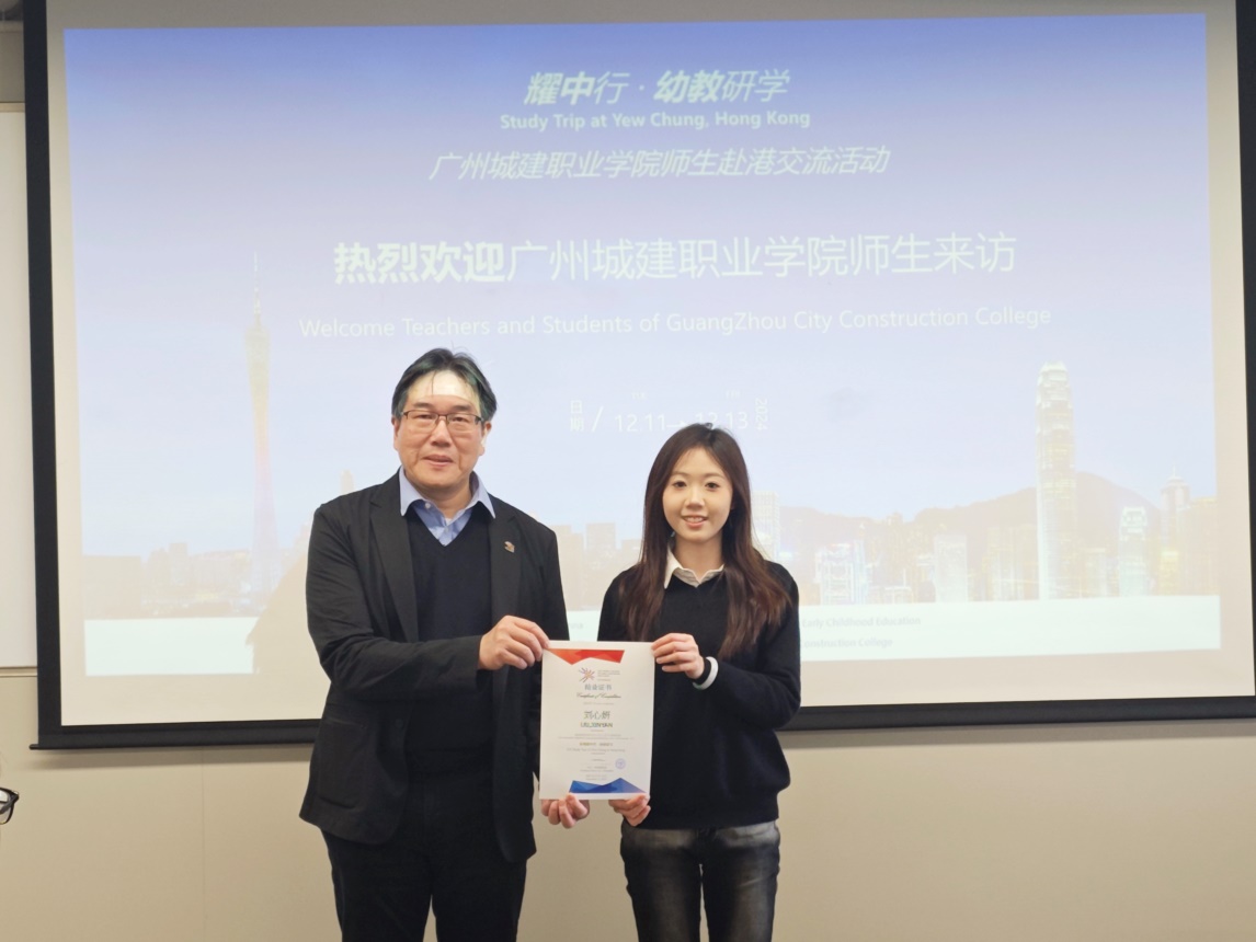 耀中幼教公司副董事长郑志强教授为同学们颁发证书